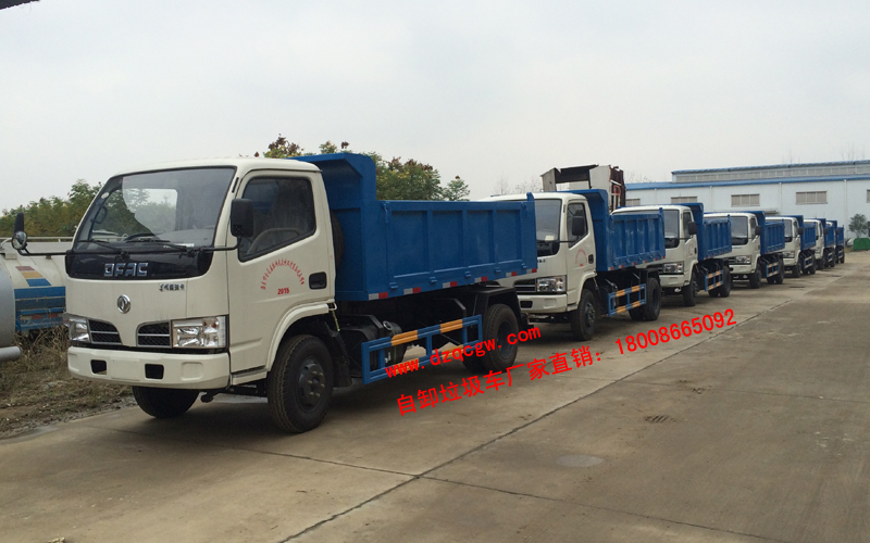 車型四:東風福瑞卡5噸自卸垃圾車,分帶液壓蓋及不帶液壓蓋兩種,以下為不帶蓋方式