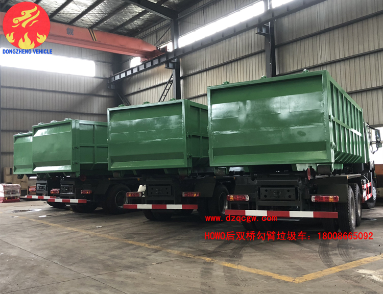 該車型采用重汽豪沃后雙橋336馬力專用底盤,上裝是可伸縮勾臂式結構,氣動控制,鋼絲胎。