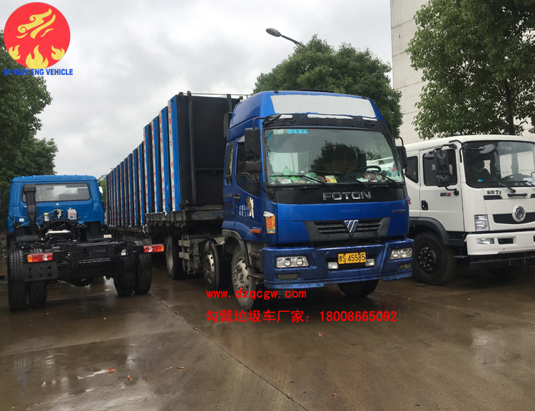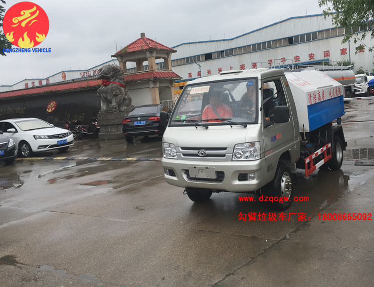 我公司生產(chǎn)的勾臂垃圾車采用高新設(shè)計(jì)可伸縮的鉤臂,實(shí)現(xiàn)垃圾廂的二次吊裝,自吊上放下,可自行傾倒垃圾。該車結(jié)構(gòu)簡單,操作穩(wěn)定方便,裝卸效率高,機(jī)械化程度高,節(jié)省人力。一車可帶多個(gè)大廂,在裝卸的運(yùn)輸過程中可有效地避免二次污染。