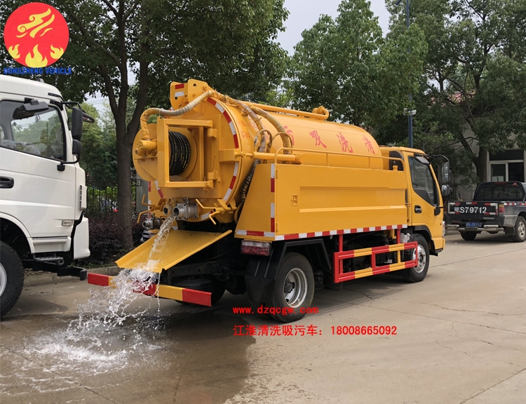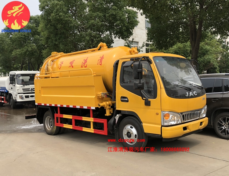 吸污部分主要配備:國產多路閥、油缸;國產高質量真空泵或水循環泵,油水分離器,四通閥,洗手裝置。罐體后封頭球閥控制自流口1個,1個視污窗,1根7米吸糞管,普通油漆。一次性成型舉升式罐體,罐體兩則油缸,后蓋液壓開啟,機械鎖緊,帶液位報警。