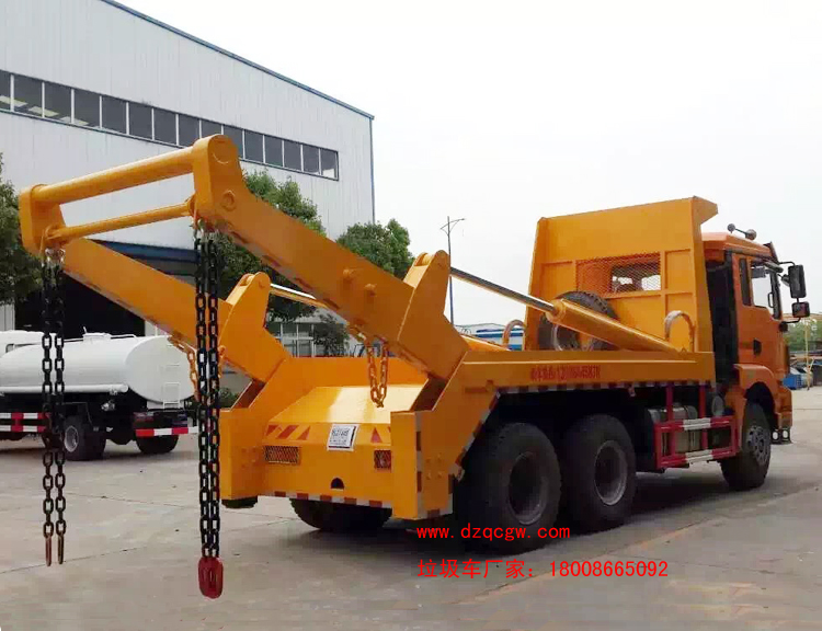 組成部分:國內知名品牌陜汽原裝底盤(全國聯保)、垃圾箱、取力器、多路換向閥、擺臂、液壓系統、操作系統等組成。(舉升油缸及鎖緊油缸系我廠自行研發生產的雙作用油缸。)