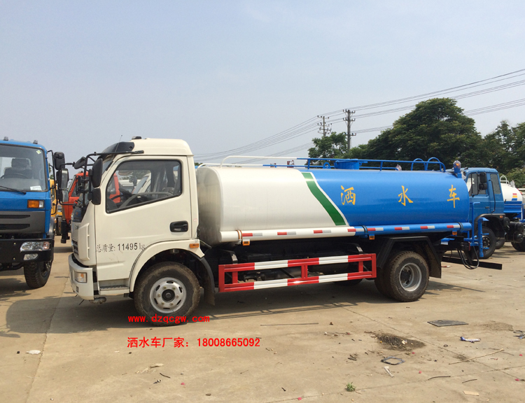 底盤(pán)說(shuō)明:東風(fēng)多利卡原裝底盤(pán),軸距3800mm,玉柴朝柴或康明斯國(guó)四發(fā)動(dòng)機(jī),6檔變速箱,2.7t前橋/6t后橋,8.25R20鋼絲胎,車架188mm全直通雙層車架。罐體有效容積:7.35立方米。P.S.該車免征已下達(dá)! 專用功能:該多功能灑水車適合于各種路面的灑水、噴霧、降溫、除塵、沖洗塵埃臟物,亦可用于園林綠化、市政環(huán)衛(wèi)、路面養(yǎng)護(hù)及應(yīng)急消防、運(yùn)輸飲用水等。專用部分由罐體、水泵、球閥、輸水管道、灑水裝置等部件組成。水泵、取力箱、球閥均為國(guó)家定型產(chǎn)品,具有性能良好,工作可靠、壓力高、流量大、油耗低等特點(diǎn)。 改裝部分:標(biāo)配前沖、后灑、側(cè)噴、工作平臺(tái)、綠化高炮、自流閥、消防接口,輸水管3米2根,8噸以上罐體帶高位花灑2個(gè),億豐泵或金龍泵,控制方式為手動(dòng)。選裝氣動(dòng)閥門(mén)控制;高位花灑,大鴨嘴,藥盤(pán),罐體側(cè)面加裝萬(wàn)向可調(diào)節(jié)噴頭,罐體后部壓塵噴灑裝置,兩個(gè)圓警燈或長(zhǎng)警燈,LED箭頭燈,泵可選裝威龍泵或農(nóng)藥噴霧裝置。 |