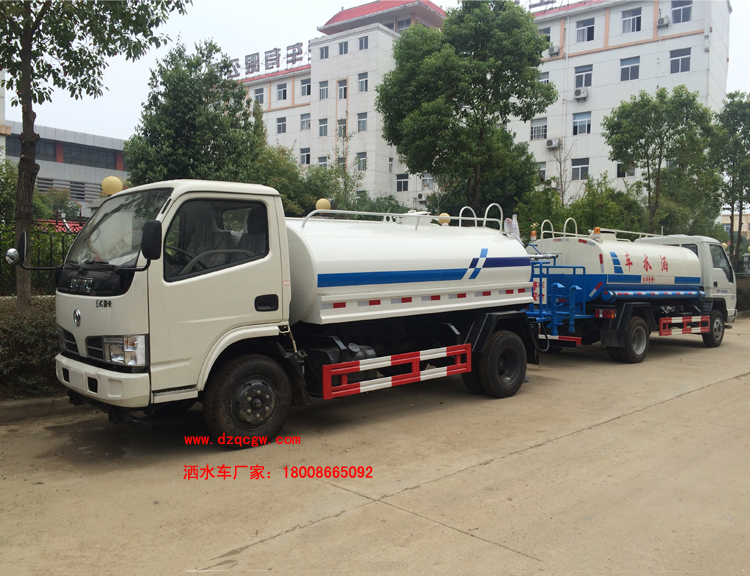 底盤說明:新款單排可前翻白色駕駛室,東風5檔變速箱,朝柴95馬力,軸距3300mm,7.00-16 原廠尼龍胎,2T前橋,3.5T后橋,氣制動。罐體有效容積4.0立方米。 專用功能:該多功能灑水車適合于各種路面的灑水、噴霧、降溫、除塵、沖洗塵埃臟物,亦可用于園林綠化、市政環衛、路面養護及應急消防、運輸飲用水等。專用部分由罐體、水泵、球閥、輸水管道、灑水裝置等部件組成。水泵、取力箱、球閥均為國家定型產品,具有性能良好,工作可靠、壓力高、流量大、油耗低等特點。 改裝部分:標配前沖、后灑、側噴、工作平臺、綠化高炮、自流閥、消防接口,輸水管3米2根,8噸以上罐體帶高位花灑2個,億豐泵或金龍泵,控制方式為手動。選裝氣動閥門控制;高位花灑,大鴨嘴,藥盤,罐體側面加裝萬向可調節噴頭,罐體后部壓塵噴灑裝置,兩個圓警燈或長警燈,LED箭頭燈,泵可選裝威龍泵或農藥噴霧裝置。 |