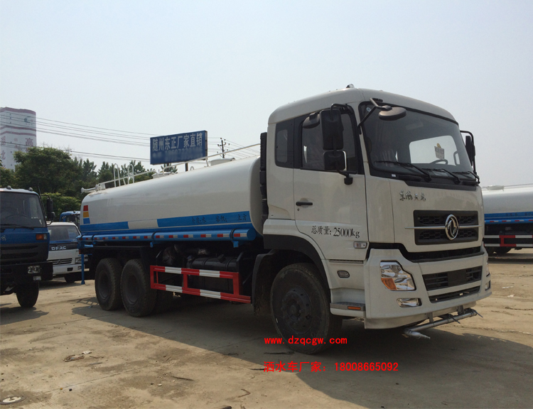 底盤(pán)說(shuō)明:東風(fēng)天龍排半標(biāo)準(zhǔn)駕駛室,6X4驅(qū)動(dòng),4350+1300mm軸距,康機(jī)245馬力柴油共軌國(guó)四發(fā)動(dòng)機(jī),7噸前橋,10噸單級(jí)減速雙后橋,陜齒8檔變速箱,10.00R20鋼絲胎,帶空調(diào),ABS,行車記錄儀。罐體有效容積:14.7立方米。 專用功能:該多功能灑水車適合于各種路面的灑水、噴霧、降溫、除塵、沖洗塵埃臟物,亦可用于園林綠化、市政環(huán)衛(wèi)、路面養(yǎng)護(hù)及應(yīng)急消防、運(yùn)輸飲用水等。專用部分由罐體、水泵、球閥、輸水管道、灑水裝置等部件組成。水泵、取力箱、球閥均為國(guó)家定型產(chǎn)品,具有性能良好,工作可靠、壓力高、流量大、油耗低等特點(diǎn)。 改裝部分:標(biāo)配前沖、后灑、側(cè)噴、工作平臺(tái)、綠化高炮、自流閥、消防接口,輸水管3米2根,8噸以上罐體帶高位花灑2個(gè),億豐泵或金龍泵,控制方式為手動(dòng)。選裝氣動(dòng)閥門控制;高位花灑,大鴨嘴,藥盤(pán),罐體側(cè)面加裝萬(wàn)向可調(diào)節(jié)噴頭,罐體后部壓塵噴灑裝置,兩個(gè)圓警燈或長(zhǎng)警燈,LED箭頭燈,泵可選裝威龍泵或農(nóng)藥噴霧裝置。 |
