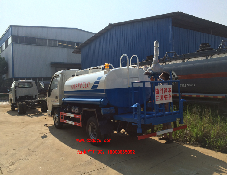 底盤說明:福田小卡之星II單排駕駛室,2800mm軸距,國四全柴68馬力,5檔箱,6.00-15輪胎,3T后橋,動轉(zhuǎn),油剎,ABS。罐體有效容積1.5立方米。 專用功能:該多功能灑水車適合于各種路面的灑水、噴霧、降溫、除塵、沖洗塵埃臟物,亦可用于園林綠化、市政環(huán)衛(wèi)、路面養(yǎng)護及應(yīng)急消防、運輸飲用水等。專用部分由罐體、水泵、球閥、輸水管道、灑水裝置等部件組成。水泵、取力箱、球閥均為國家定型產(chǎn)品,具有性能良好,工作可靠、壓力高、流量大、油耗低等特點。 改裝部分:標配前沖、后灑、側(cè)噴、工作平臺、綠化高炮、自流閥、消防接口,輸水管3米2根,8噸以上罐體帶高位花灑2個,億豐泵或金龍泵,控制方式為手動。選裝氣動閥門控制;高位花灑,大鴨嘴,藥盤,罐體側(cè)面加裝萬向可調(diào)節(jié)噴頭,罐體后部壓塵噴灑裝置,兩個圓警燈或長警燈,LED箭頭燈,泵可選裝威龍泵或農(nóng)藥噴霧裝置。 |