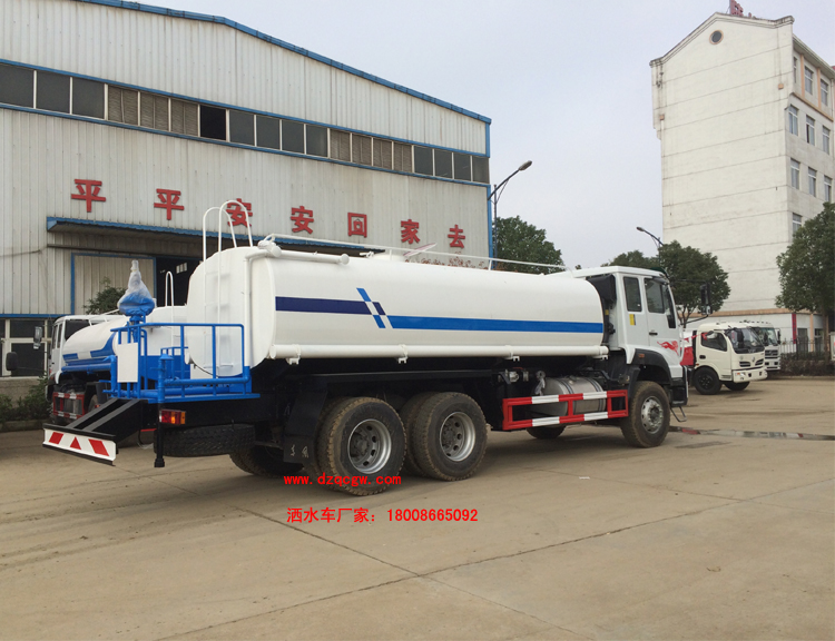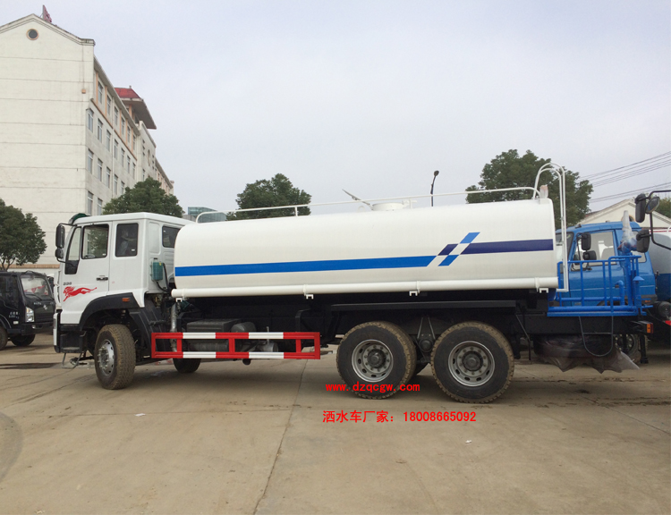 底盤說明:重汽斯太爾后雙橋底盤,重汽280馬力國五發(fā)動機,HOWO 10檔變速箱,153前后橋,4350+1350mm軸距,11.00R20鋼絲胎,帶空調(diào),ABS.罐體有效容積:14.7立方米。 專用功能:該多功能灑水車適合于各種路面的灑水、噴霧、降溫、除塵、沖洗塵埃臟物,亦可用于園林綠化、市政環(huán)衛(wèi)、路面養(yǎng)護及應(yīng)急消防、運輸飲用水等。專用部分由罐體、水泵、球閥、輸水管道、灑水裝置等部件組成。水泵、取力箱、球閥均為國家定型產(chǎn)品,具有性能良好,工作可靠、壓力高、流量大、油耗低等特點。 改裝部分:標配前沖、后灑、側(cè)噴、工作平臺、綠化高炮、自流閥、消防接口,輸水管3米2根,8噸以上罐體帶高位花灑2個,億豐泵或金龍泵,控制方式為手動。選裝氣動閥門控制;高位花灑,大鴨嘴,藥盤,罐體側(cè)面加裝萬向可調(diào)節(jié)噴頭,罐體后部壓塵噴灑裝置,兩個圓警燈或長警燈,LED箭頭燈,泵可選裝威龍泵或農(nóng)藥噴霧裝置。 |