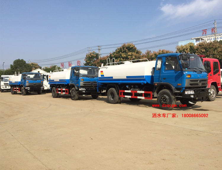底盤說明:東風(fēng)145國四駕駛室,采用3950mm軸距,玉柴或康明斯國四發(fā)動機(jī),250mm大梁,東風(fēng)6檔變速箱,前橋3.6噸,后橋9噸,9.00-20輪胎。罐體有效容積:7.56立方米。運(yùn)輸介質(zhì):水。帶免征。 專用功能:該多功能灑水車適合于各種路面的灑水、噴霧、降溫、除塵、沖洗塵埃臟物,亦可用于園林綠化、市政環(huán)衛(wèi)、路面養(yǎng)護(hù)及應(yīng)急消防、運(yùn)輸飲用水等。專用部分由罐體、水泵、球閥、輸水管道、灑水裝置等部件組成。水泵、取力箱、球閥均為國家定型產(chǎn)品,具有性能良好,工作可靠、壓力高、流量大、油耗低等特點。 改裝部分:標(biāo)配前沖、后灑、側(cè)噴、工作平臺、綠化高炮、自流閥、消防接口,輸水管3米2根,8噸以上罐體帶高位花灑2個,億豐泵或金龍泵,控制方式為手動。選裝氣動閥門控制;高位花灑,大鴨嘴,藥盤,罐體側(cè)面加裝萬向可調(diào)節(jié)噴頭,罐體后部壓塵噴灑裝置,兩個圓警燈或長警燈,LED箭頭燈,泵可選裝威龍泵或農(nóng)藥噴霧裝置。 |