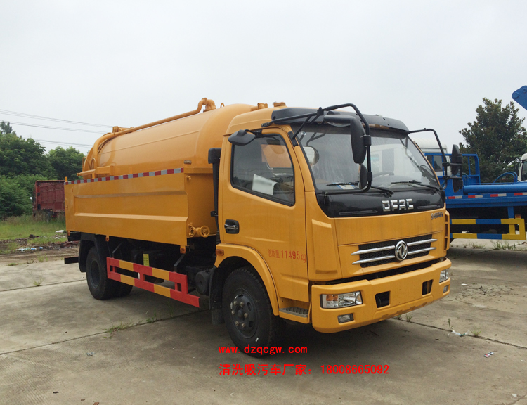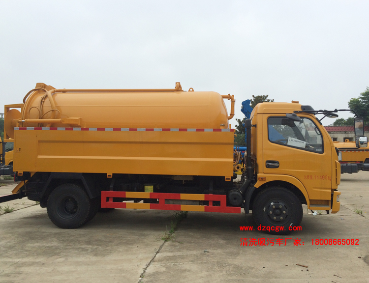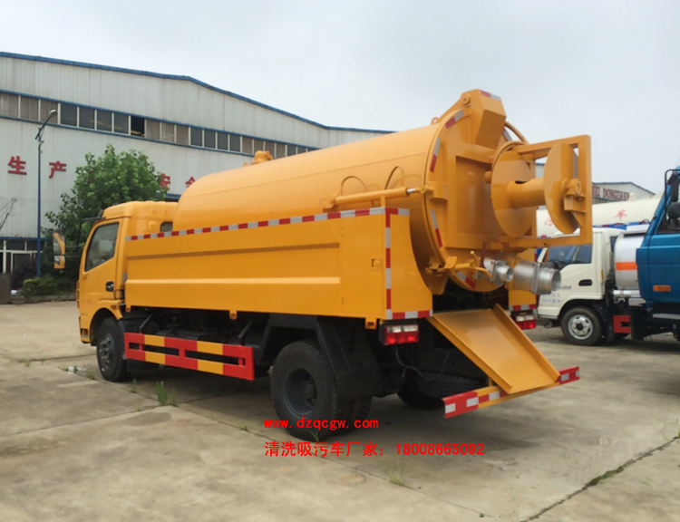 吸污部分主要配備:國產多路閥、油缸;國產高質量真空泵,油水分離器,四通閥,洗手裝置。罐體后封頭球閥控制自流口1個,1個視污窗,1根7米吸糞管,普通油漆。一次性成型舉升式罐體,罐體兩則油缸,后蓋液壓開啟,機械鎖緊,帶液位報警。主要用于下水道、雨水井、檢查井、化糞池及各種溝渠內的污泥、糞便或石油化工廠污水池淤積物的抽吸、裝運和排卸。